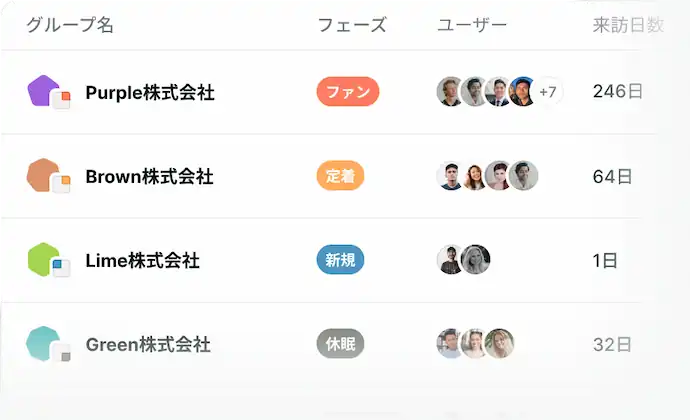新規・定着・ファンなどユーザーの定着度を可視化。