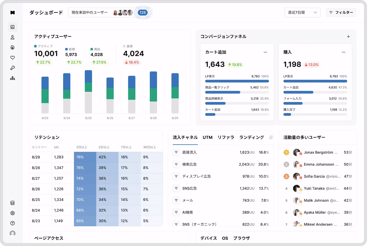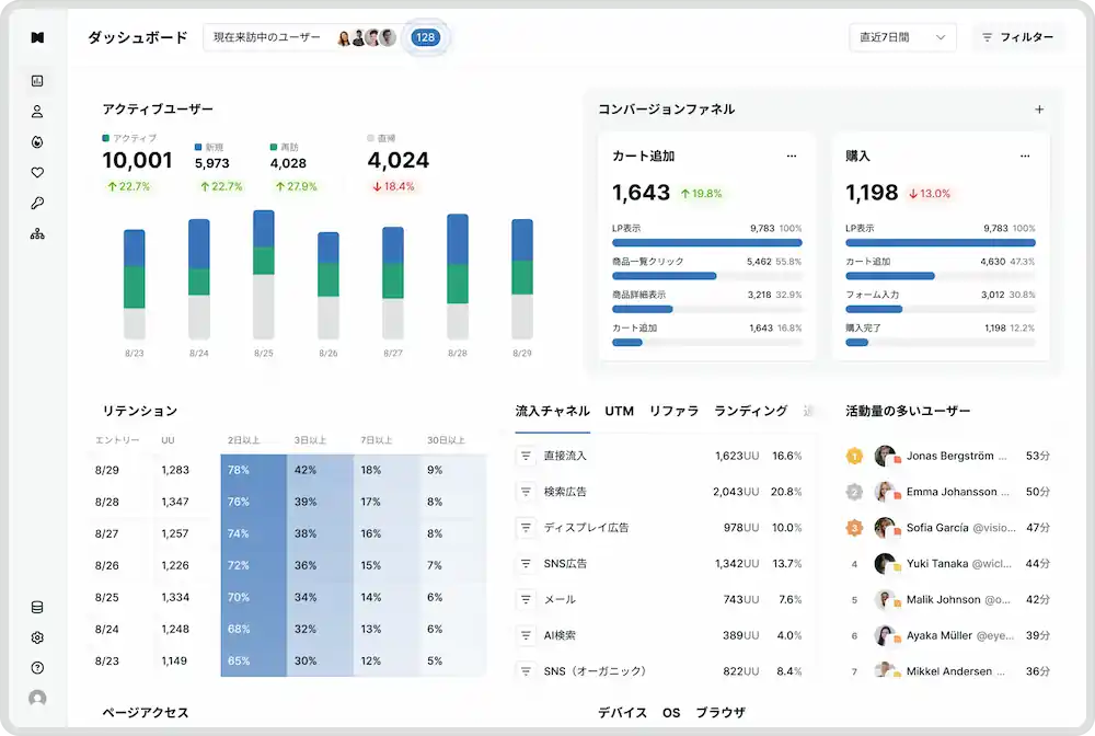 行動・属性・変化の流れから、多角的にユーザー傾向を捉えます。